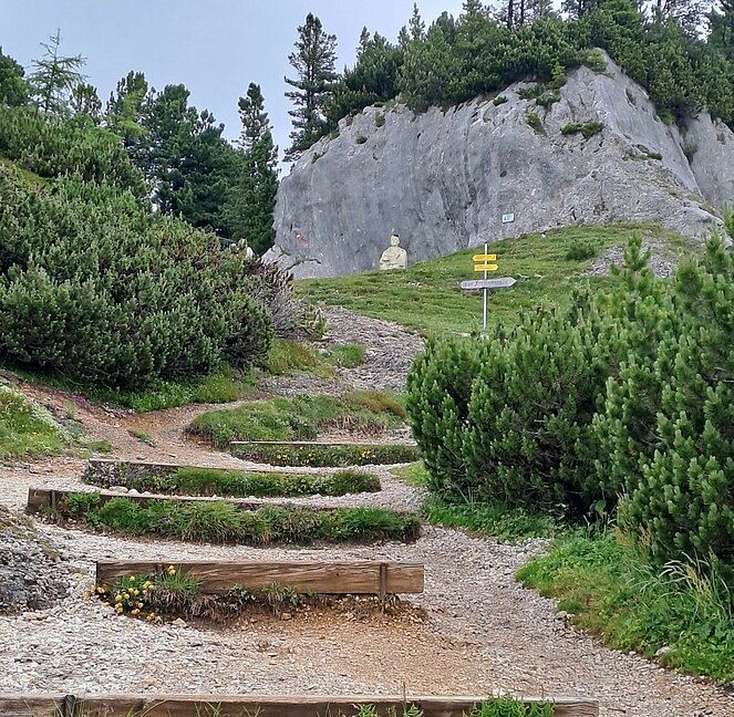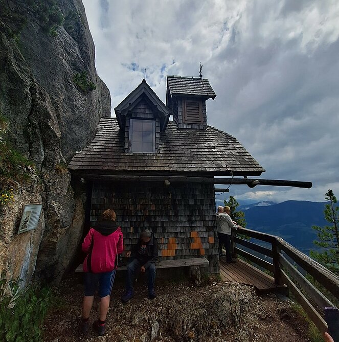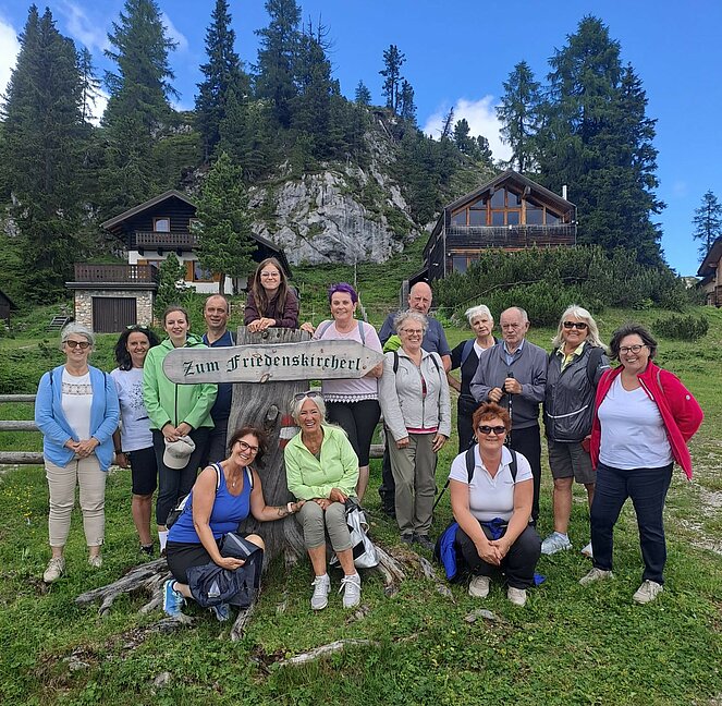 Weiter ging es über Liezen nach Gröbming, wo es noch neun Kilometer kurvenreich den Berg hinauf ging. Am Parkplatz angekommen, ging es noch dreißig Minuten zu Fuß steil den Berg hinauf, zur Friedenskirche, dort angekommen gab es zur Belohnung eine wunderschöne Aussicht Richtung Schladming. Danach ging es gemütlich zum Mittagessen. Die Heimfahrt ging über den Sölkpass, mit einer kurzen Pause beim Alpengasthaus Kreuzerhütte. Anschließend gemütliche Heimreise.Es war ein schöner gelungener Ausflug mit vielen Eindrücken.