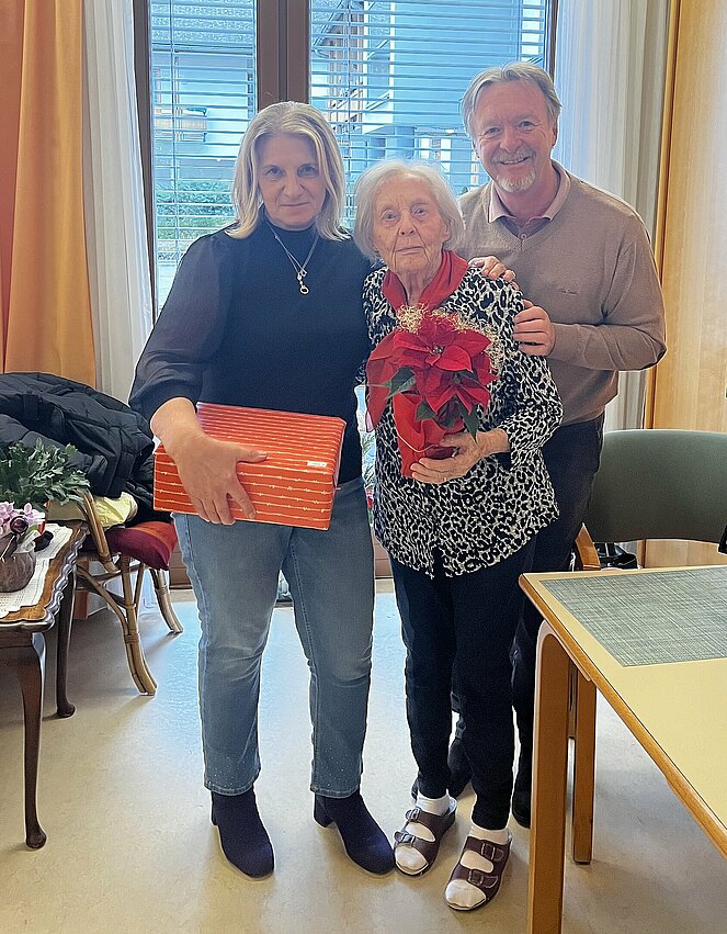Der Vorsitzende der PVÖ-Ortsgruppe Ferlach, Franz Wutte, gratulierte gemeinsam mit der Subkassiererin Olga Just, Baker Frau Maria herzlich zu ihrem 100. Geburtstag, den sie am 6.Dezember 2025 feiern durfte.