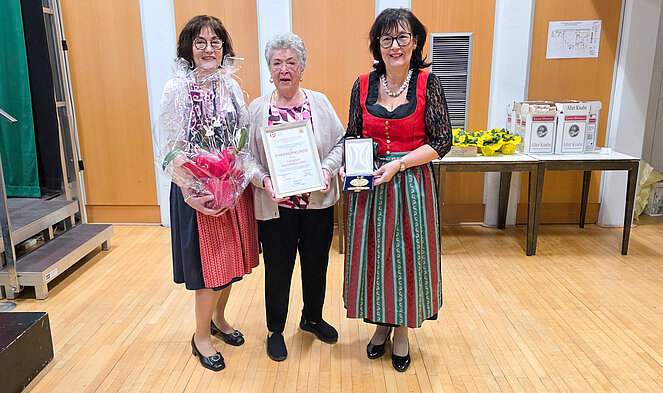 Ein weiterer Höhepunkt der Veranstaltung war die Verleihung der Ehrenurkunde an den Ehrenobmann der OG Ferlach, Josef Gamsler. Ebenso erhielt Theresia Kassmannhuber für ihre langjährige Funktionärstätigkeit und ihre vorbildlichen Dienste im Interesse der Ortsgruppe Ferlach eine Ehrenurkunde mit Ehrenmedaille. Sie war sichtlich überrascht und zu Freudentränen gerührt.