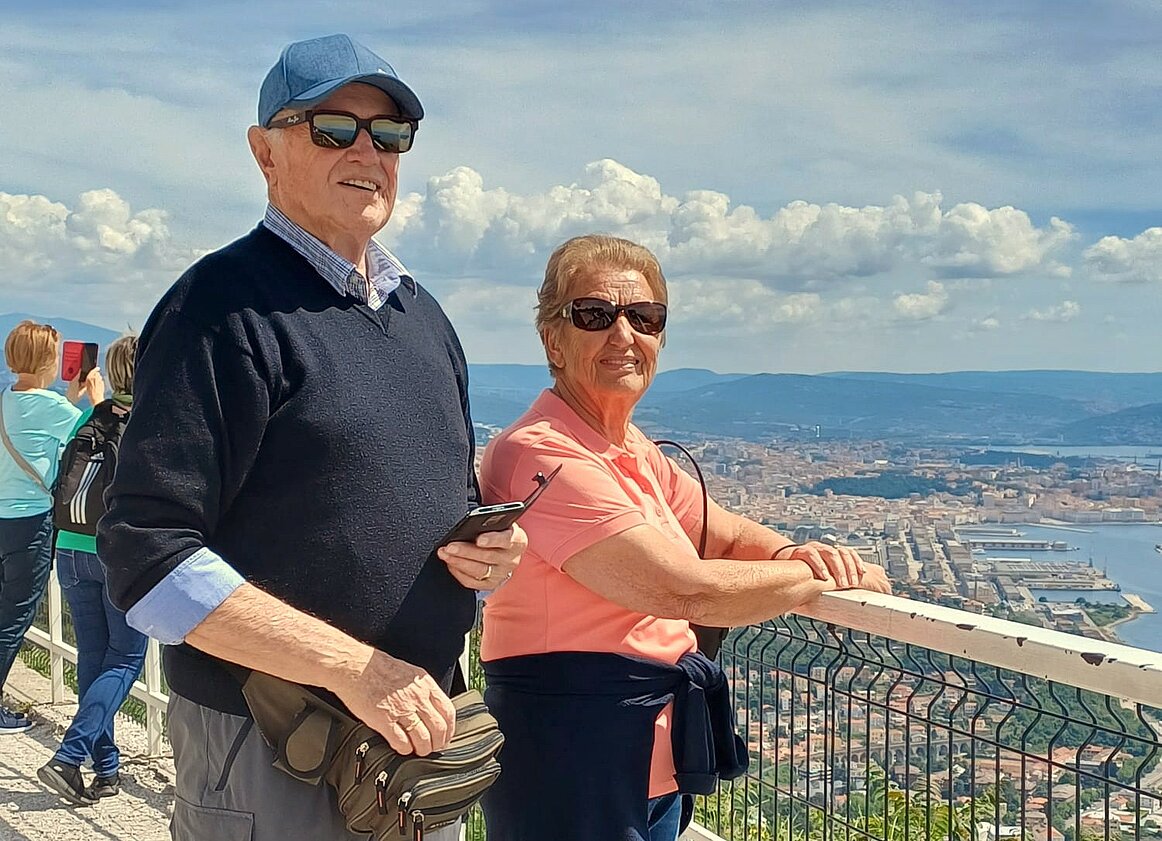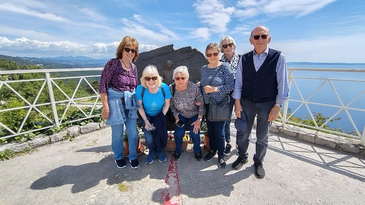 Danach fahren wir weiter nach Sezana. Mittagessen im Restaurant Spark. Nach reichhaltigen Essen geht es Richtung Triest. Monte Grisa - die Wallfahrtskirche am Berg.Sie steht ca.8 km nordwestlich von Triest auf dem 330 m hohen Monte Grisa. Der Blick von dort auf das Meer ist einfach umwerfend. Anschließend ging die Weiterfahrt „zum Bummeln nach Triest. Dort wartete Cappuccino, Wein, Aperol,und andere Köstlichkeiten auf uns.