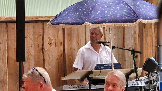 Für die Musik sorgte der allseits beliebte Alleinunterhalter Hans Zwetti..Kühle Getränke und verschiedene Grillspezialitäten sorgten für das leibliche Wohl,