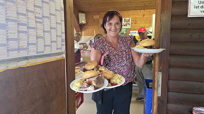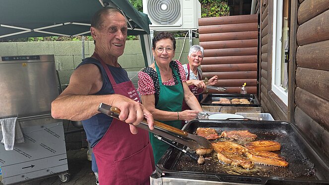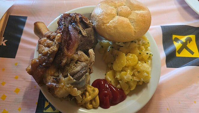 Für das leibliche Wohl war bestens gesorgt: Neben herzhaften Grilltellern und köstlich gegrillten Stelzen verwöhnten die fleißigen Bäckerinnen der Ortsgruppe die Besucher mit einer großen Auswahl an selbstgebackenen Mehlspeisen
