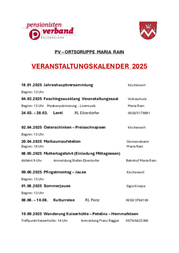 Ortsgruppenvorsitzender: Eberdorfer Stefan | Tel: +43 650 5178891 | Mail: mariarain@pvkaernten.at
