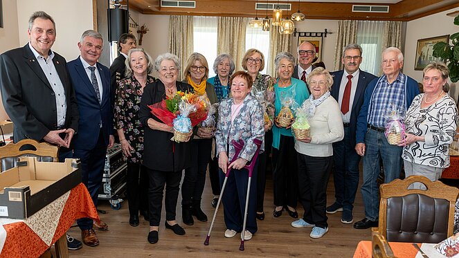 Gemeinsam mit Bürgermeister Franz Pfaller wurden den ausscheidenden Funktionärinnen und Funktionären kleine Abschiedsgeschenke für ihren ehrenamtlichen Einsatz und Zeitaufwand überreicht.