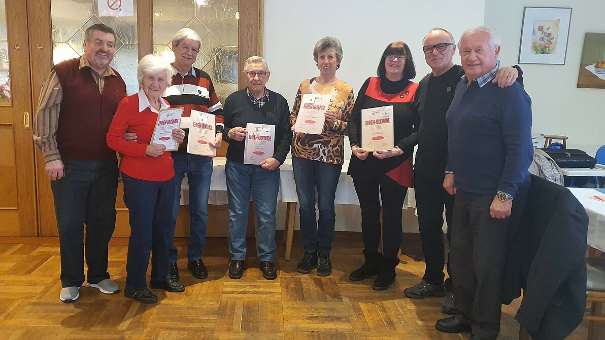 Obmann Martin Bürger, Mathilde Thaler, Klaus Thaler, Erika Isopp, Magrit Tscheber, Ludmilla Kuhn, Bezirksobmann Hans Steiner, Wilhelm Smerslak