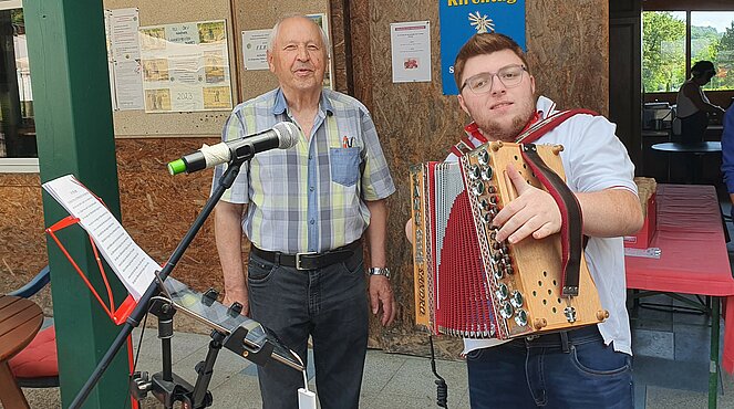 Bei besten Wetter und guter Stimmung umrahmte zuerst der Enkel des Obmannes Sandro die Veranstaltung mit der Ziehharmonika. Später im Programm folgte dann Werner mit musikalischer Unterhaltung. Es gab einen großen Glückshafen mit vielen schönen Preisen.