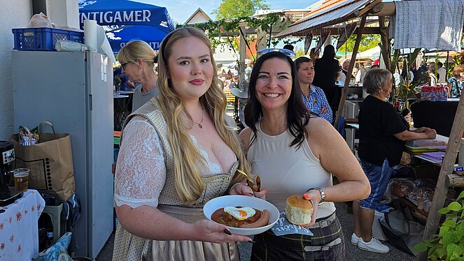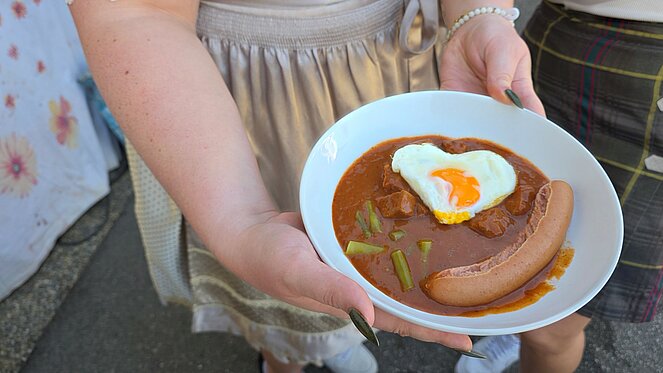 Kulinarisch verwöhnt wurden die Gäste mit einem köstlichen Fiakergulasch, liebevoll zubereitet von Renate, sowie köstlichen Reinlingen von Dorothea gebacken. Das ganze wurde originell mit goldenen Besteck serviert. Dazu gab es gut gekühlte Getränke – serviert aus einem von Karoline liebevoll dekorierten Schankwagen, der für echte Feststimmung sorgte.