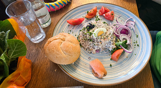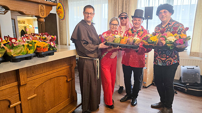 Der Bürgermeister und sein Team nutzten die Gelegenheit, um allen Damen einen Valentinsgruß zu überbringen. Die Mitglieder der Ortsgruppe Maria Saal wurden zu Heringssalat und Getränk eingeladen, und alle Anwesenden – besonders die Kinder – erhielten einen Faschingskrapfen.