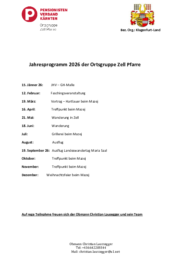 Ortsgruppenvorsitzender: Lausegger Christian | Tel: +43 4227 3340 | Mail: zellpfarre(at)pvkaernten.at