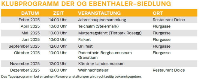 "Das Motto in der OG Ebenthaler-Siedlung lautet: Gemeinsam und nicht einsam. Das zeigt sich auch in unseren netten Festen und tollen Tagesfahrten."