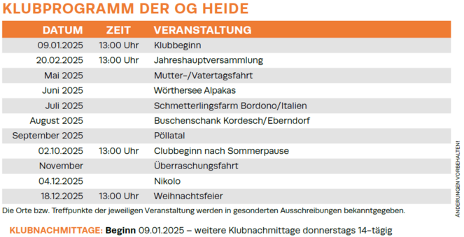 "Bei unseren Clubnachmittagen jeden Donnerstag wird mit großer Freude Bingo oder Karten gespielt! Wir haben auch sehr schöne Tagesreise zu bieten, die mit Begeisterung angenommen werden. Jeden Freitag findet ein gemeinsames Kegeln statt."