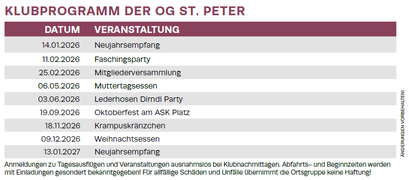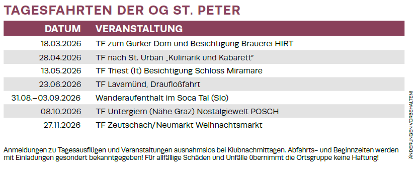 Ortsgruppenvorsitzender: Pikl Richard | Tel: +43 (0) 660 51 51 791 | Mail: st.peter(at)pvkaernten.at