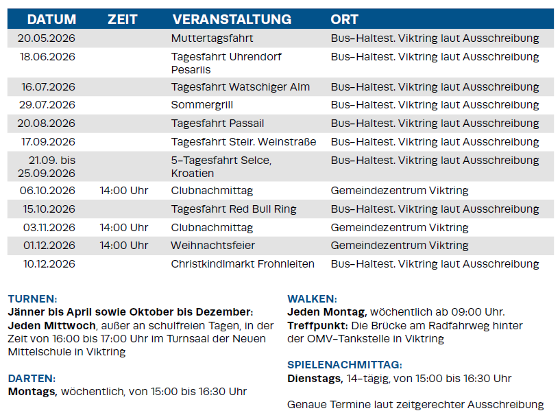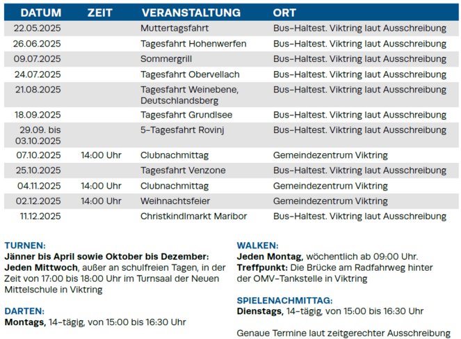 "Die Ortsgruppe Viktring zeichnen die monatlichen Fahrten zu sehr interessanten Zielen und die vielfältigen sportlichen Aktivitäten aus."