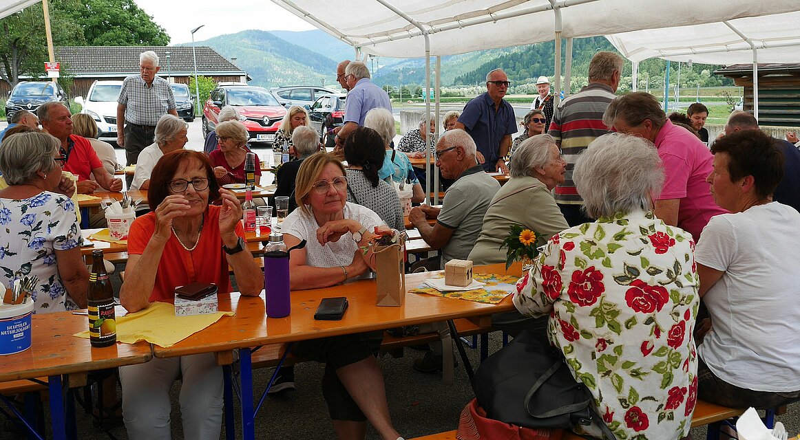 Bei den anschließenden Frühschoppen begrüßte der Vorsitzende Franz Zwatz den BGM Helmut Schweiger, BGM Tomas Kantor, Alt Bürgermeister Heinz Wagner, Landerspräsident Stellvertreter Hans Steiner, BZ-Hauptkassier Gabriele Klausner. Weiteres begrüßte der Obmann Ortgruppen mit Abordnungen von BZ St. Veit und Ebenthal. Der Landespräsident überbracht Grüße von der Landesleitung und informierte uns über Neuigkeiten über Kärnten und der Zentrale in Wien.