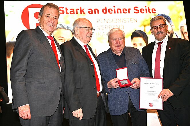 Neben der Ehrung des scheidenden Landespräsidenten Karl Bodner nahmen Verbandspräsident Dr. Peter Kostelka, der neue Landespräsident Dieter Hacker und Landesdirektor Bgm. Arnold Marbek auch noch weitere Ehrungen verdienter PVÖ-Funktionärinnen und Funktionäre vor. Mit Ehrenamtsmedaillen in Gold bzw. Silber ausgezeichnet wurden: Erich Rossian (Hermagor), Margot Klemenjak (Klagenfurt-St. Ruprecht), Wolfgang Hobel (St. Andrä), Elvira Wappis (Penk), Gregor Mikosch (Wernberg) und Josef Gamsler sen. (Ferlach).