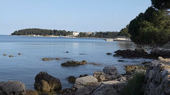 Am ersten Tag waren wir im Waldpark Zlatni rt. Unterwegs. Zlatni rt, ist bekannt auch als Punta Corrente, er ist der wichtigste Naturpark an der nordöstlichen Adria. Der Waldpark Zlatni rt ist nur 15 Gehminuten vom Zentrum von Rovinj entfernt und bietet auf einer Fläche von 52 Hektar eine völlig andere Welt mit beispielloser Pflanzenpracht.