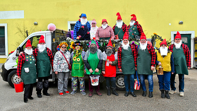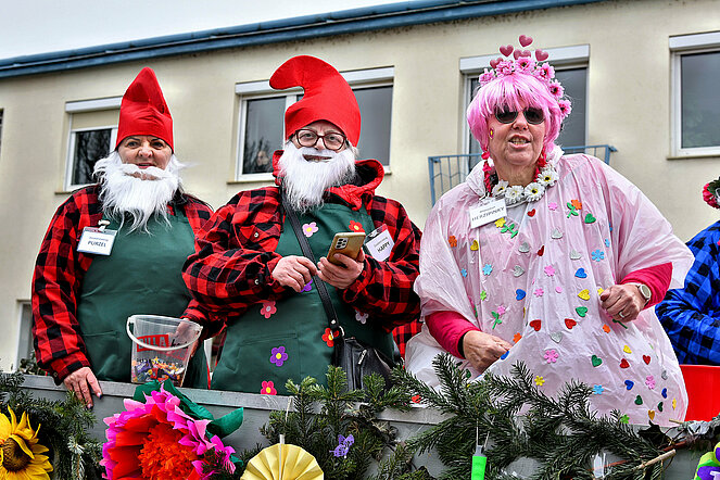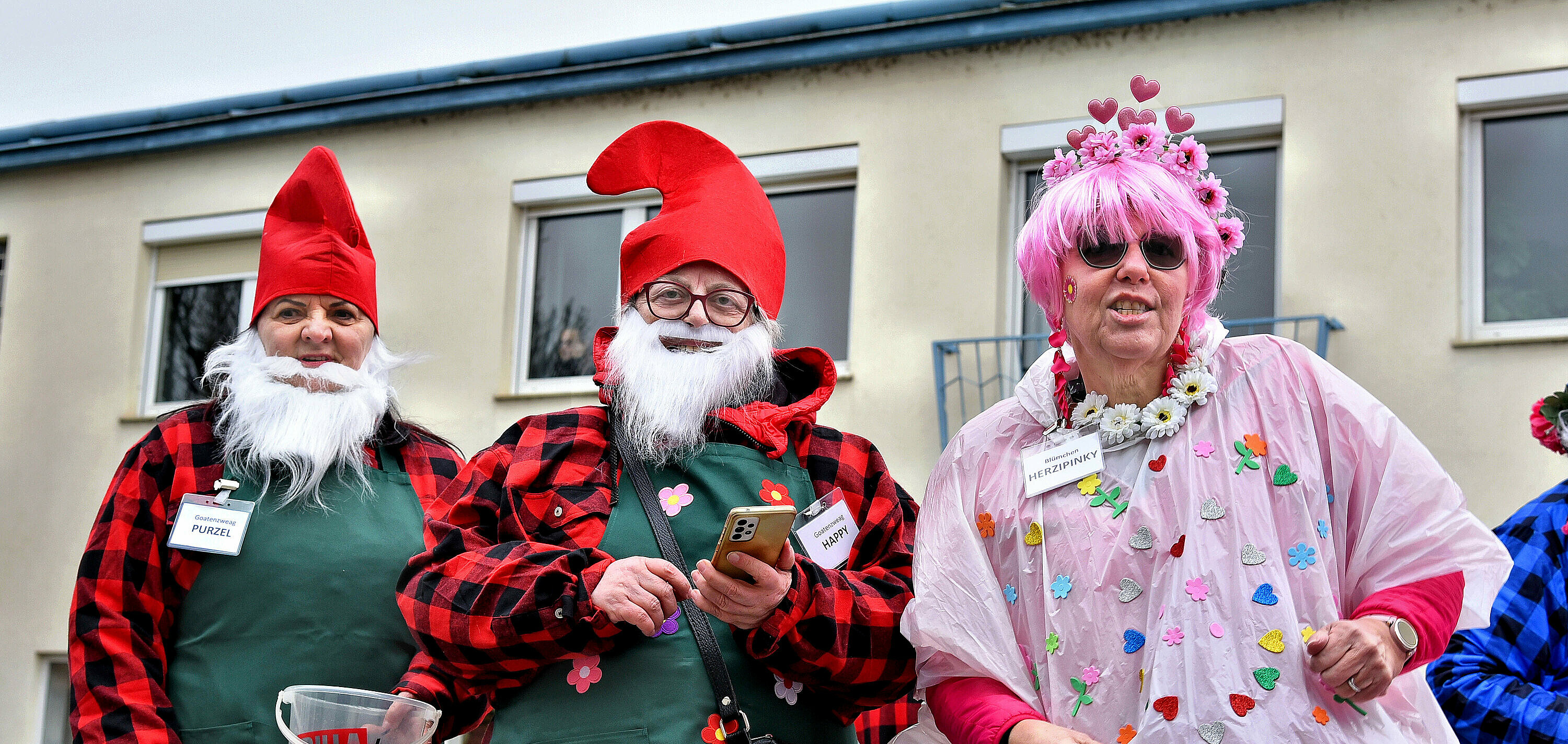 Verkleidet als Gartenzwerge und Blümchen hatten sie unglaublich viel Spaß ! Wir genossen das bunte, lebendige und laute Spektakel, begleitet von unserem schön dekorierten Wagen …. und möchten nächstes Jahr unbedingt wieder mitmachen - so die einhellige Meinung!