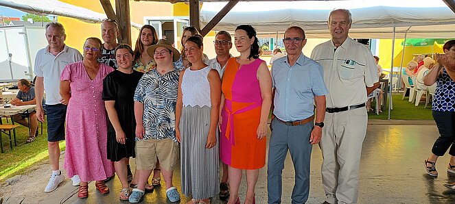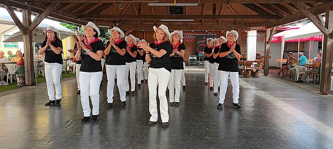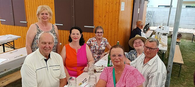 Obmann Franz Fellner und sein großartiges Team stellten wieder einmal ein tolles Sommerfest auf die Beine. Im Garten des Gasthauses Haferl in Auersthal fand, wie immer, das Fest statt. Die "Schopf-Buam" sorgten für die musikalische Begleitung und animierten zum Tanz. Trotz der hohen Temperaturen waren die Pensionisten sehr tanzfreudig. Unter den Ehrengästen waren LAbg.René Zonschits, Bundsportref.PVÖ Willi Binder; die Bezirksfrauenvorsitzende Bez.Mistelbach, Claudia Musil, SPÖ-Vorsitzender Günther Weilinger und einige Gemeinderäte aus Auersthal. Auch aus den umliegenden Orten kamen zahlreiche Gäste! Die Aufführungen der bewährten und schon professionellen Pensi-Line-Dancern waren sowohl kurzweilig als auch unterhaltsam.