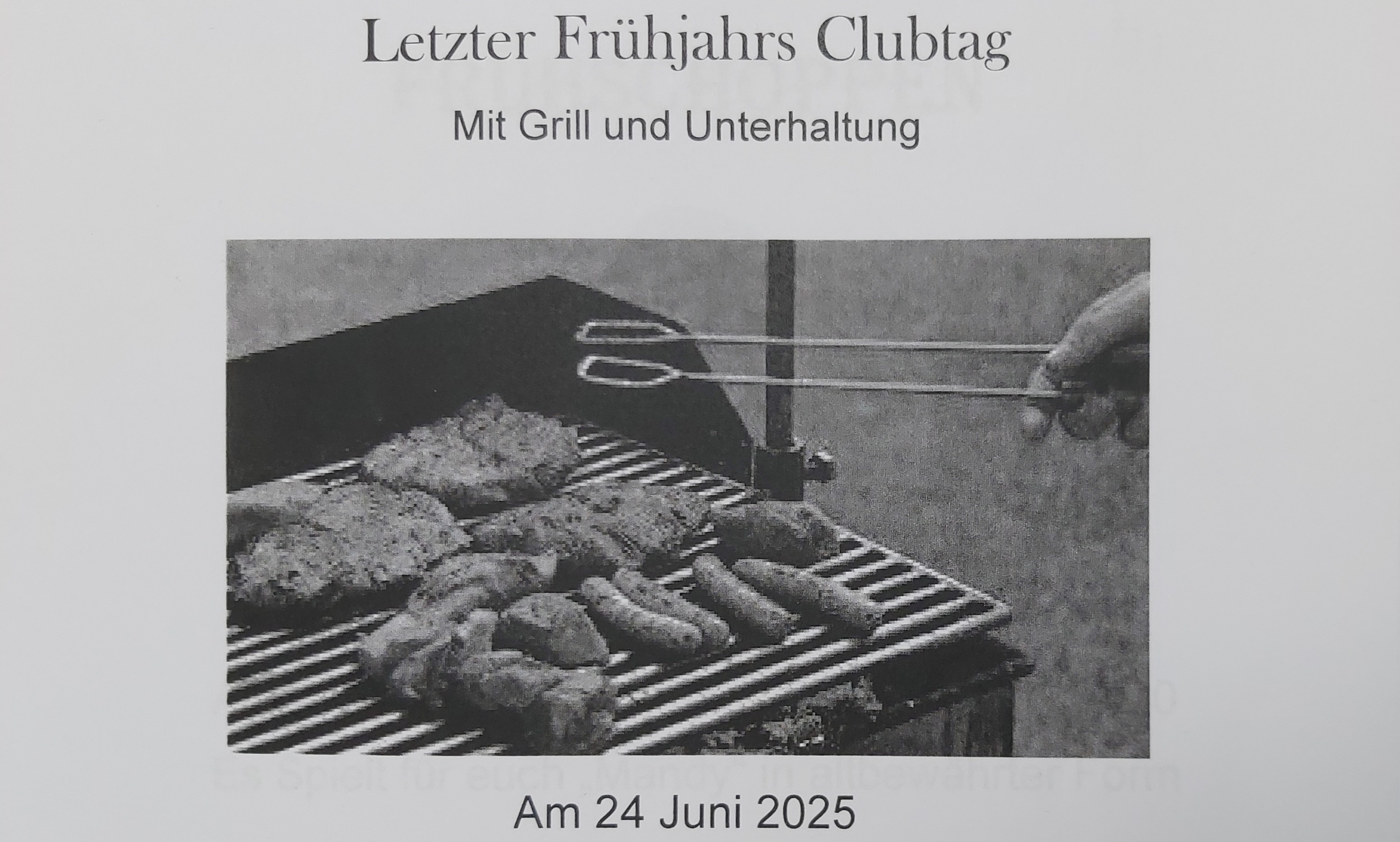 Der Klub der Ortsgruppe hielt am 24. Juni 2025 seinen letzten wöchentlichen Klubabend vor der Sommerpause mit einer Einladung zum Grillen ab, die viele Mitglieder annahmen und sich gut unterhielten. Der Vorstand wünscht bis zum nächsten Klub am 2. September einen schönen Sommer und viel Vergnügen bei seinen sommerlichen Veranstaltungen Frühschoppen (6.7.), Mörbisch (21.7.), Grätzlfest (15.8. bei Schlechtwetter 17.8.).