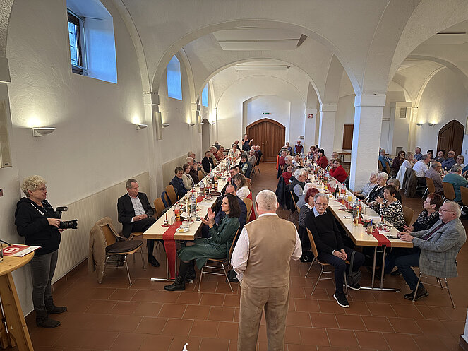 Sehr festlich war das Ambiente in den Räumen des Hofkellers. Unter den Gästen begrüßte Norbert Miedler LAbg.René Zonschits, Bundessportref.KR Willi Binder und die Bürgermeisterin Mag.Marianne Rickl-List. Die fröhliche Pensionistenrunde unterhielt sich bestens. Für weihnachtliche Stimmung die Musikgruppe "3-Klang". Die Gruppe aus drei sehr amitionierten jungen Frauen, hatte sich erst kürzlich zusammengefunden und begeisterte alle. Zwischen den Musikstücken wurden Texte dargeboten. Es war sowohl ein feierlicher als auch unterhaltsamer Nachmittag.