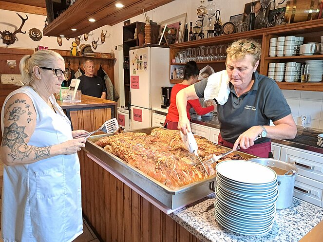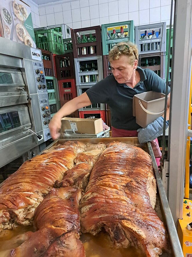 Nach dem schokoladigen Erlebnis ging es weiter nach Göttlesbrunn, wo ein gemütliches Spanferkelessen auf die Gruppe wartete. In geselliger Runde wurde bei herzhaften Schmankerln und angeregten Gesprächen der Nachmittag genossen. Die stimmungsvolle Atmosphäre und das köstliche Essen rundeten den Ausflug perfekt ab.