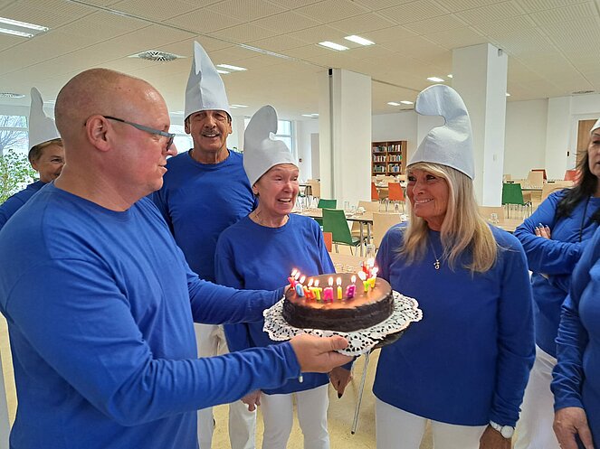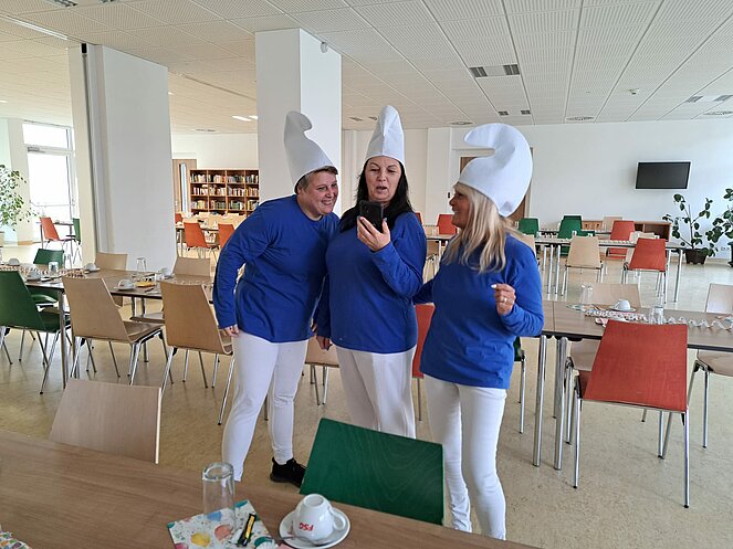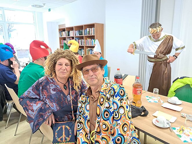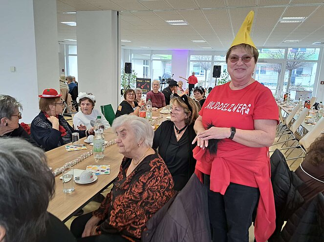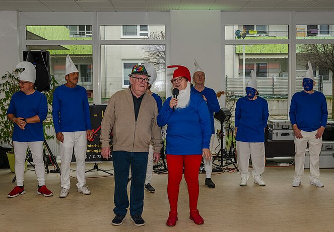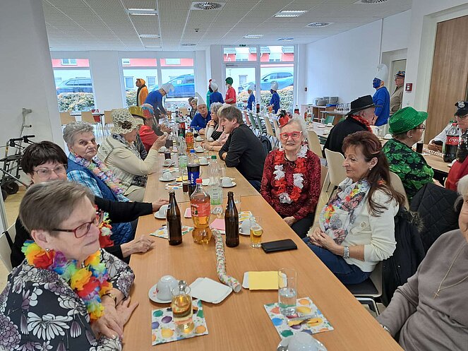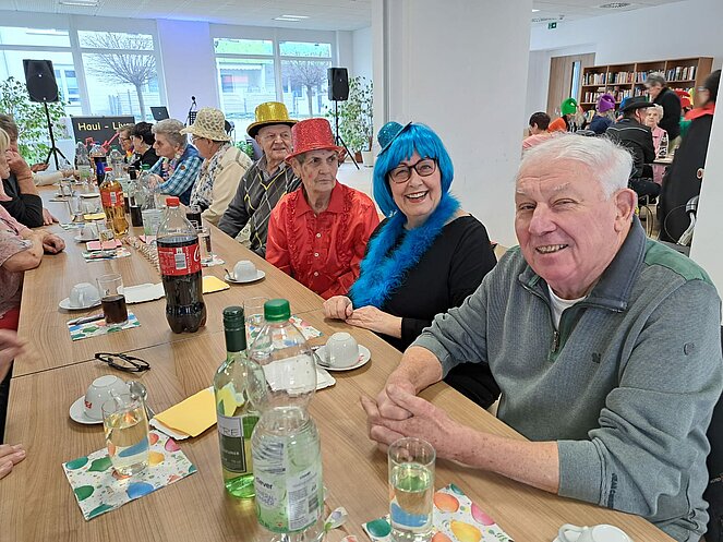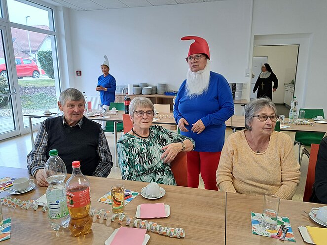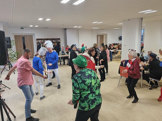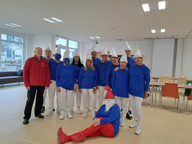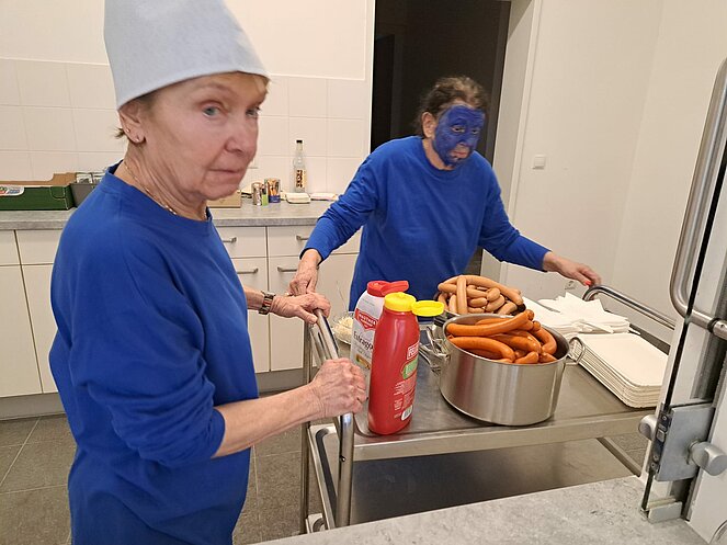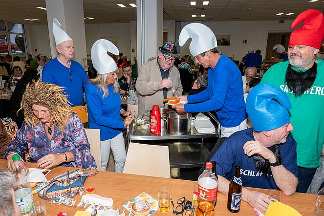 Bereits beim Eintreffen lag festliche Stimmung in der Luft: tolle Kostüme, lachende Gesichter und der Duft von frischem Kaffee und Krapfen. Das Team der „Helfer‑Schlümpfe“ – ebenfalls liebevoll verkleidet – sorgte den ganzen Nachmittag über dafür, dass es den Gästen an nichts fehlte. Mit viel Engagement verwöhnten sie die Besucherinnen und Besucher mit Krapfen, Würsteln, Kaffee und einer Auswahl an Getränken.