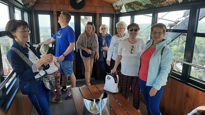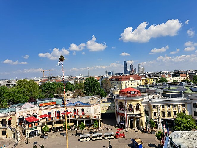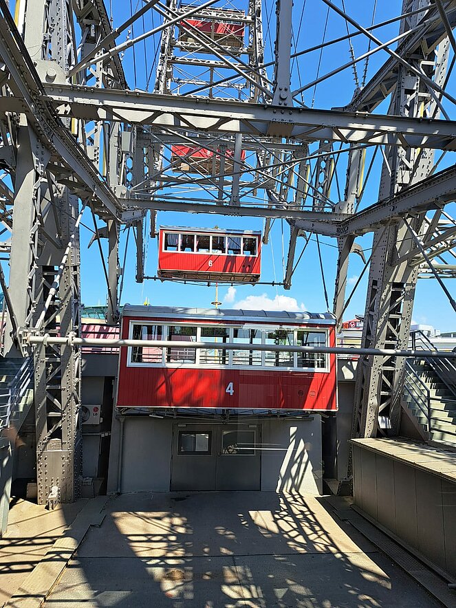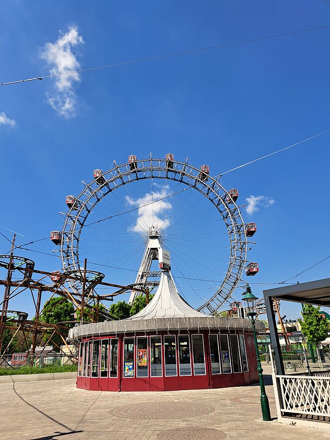 Danach ging es weiter zu einer Fahrt mit dem Riesenrad. Hier konnten unsere Pensionistinnen und Pensionisten an diesem sonnigen Tag die wunderschöne Aussicht über Wien genießen. In einer Höhe von bis zu 64,75 Metern über dem Boden wurde gestaunt, genossen und fotografiert.