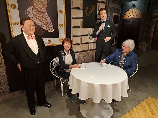 Dort angekommen, besuchten sie die mehr als 80 Wachsfiguren im Madame Tussauds Wachsfigurenkabinett. Kaiser Franz Joseph und Sisi, Wolfgang Amadeus Mozart, Falco, Maria Theresia oder Gustav Klimt sind nur einige der heimischen Persönlichkeiten und historischen Figuren, die man dort antrifft.