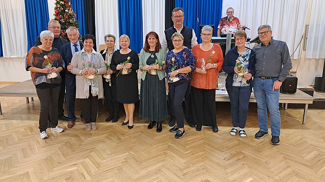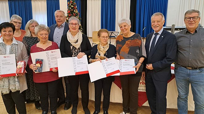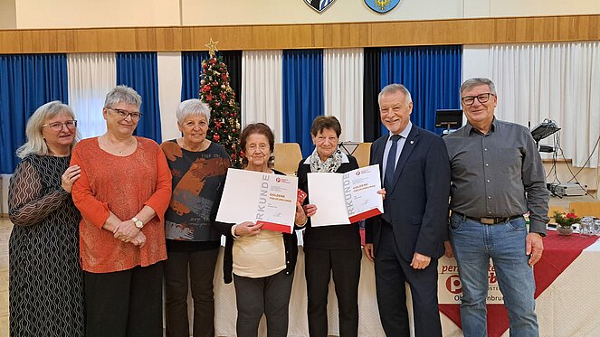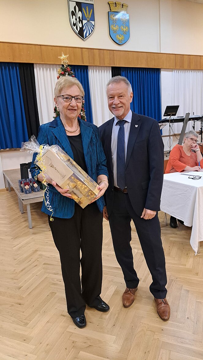So kamen zahlreiche Pensionisten nicht nur, um sich für Weihnachten in die richtige Stimmung zu bringen, sondern sie bekamen auch Ehrungen für langjährige Treue zum PVÖ überreicht. Besonders freute sich Obmann Herbert Porsch über die 30jährige Mitgliedschaft von Hermine Paier und Erika Porsch. Aber auch über die Anwesenheit seiner Vorgängerin, Christine Zapletal, die ihren 75.Geburtstag feierte.