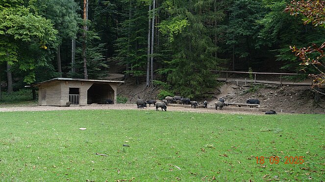33 Pensionisten der OG Weikendorf machten einen gesunden und interessanten Tagesausflug in den Naturpark Sparbach, den ältesten Naturpark Österreichs. Anfangs war es trüb, später herrlicher Sonnenschein. Auch unsere ältesten und gebrechlichsten Pensionisten konnten den zwangslosen Spazierweg geniessen. Vorbei am Teich mit Wassermühle zum großen Kinderspielplatz, bis zur Ruine schafften es alle. Besonders lieb war die Fütterung, wo eine riesige Horde von Wildschweinen, groß und klein, dem Fütterer nachliefen. Und das, obwohl es wilde Tiere sind. Auch 5 Esel, Schafe und Damwild konnten wir beobachten..