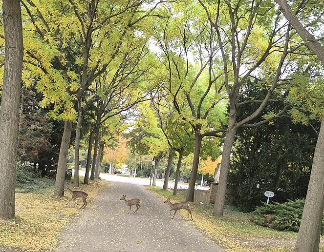 Anschließend fuhren wir zum Wiener Zentralfriedhof. Die Ehrengräber großer Persönlichkeiten und die schier unglaubliche Größe des Friedhofs ließen uns erstaunen. Auch die wunderschön angelegten Wege und alten Baumalleen sorgten für eine besondere Stimmung. Sogar einige Rehe ließen sich blicken und machten den Besuch zu einem unvergesslichen Erlebnis.