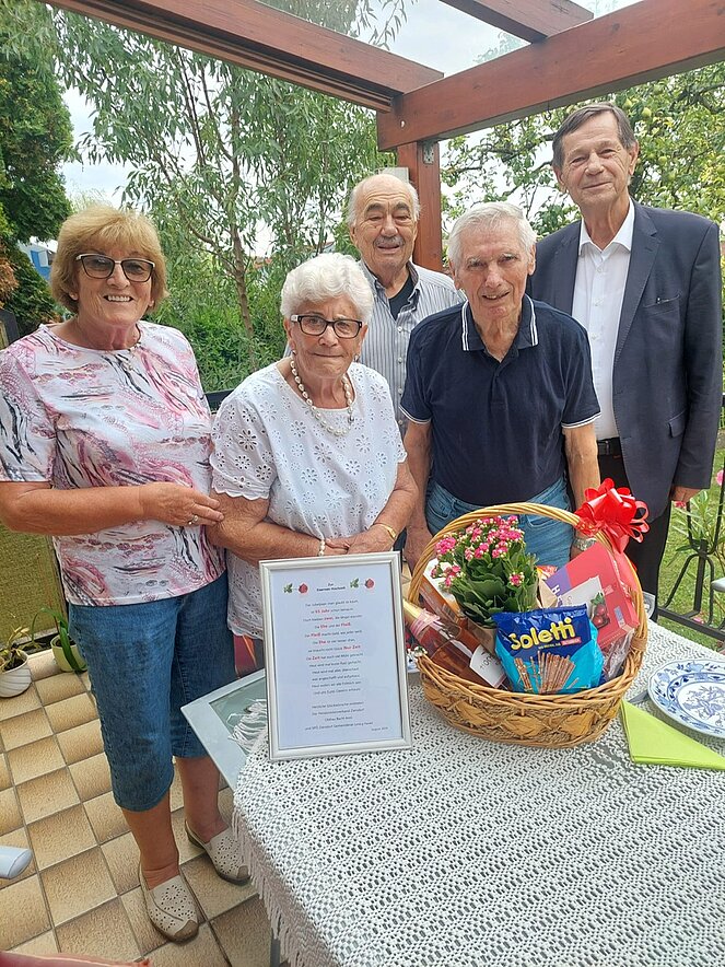 Aus diesem Anlass wurde eingeladen. Präsident Dr. Hannes Bauer,Obfrau Anni Bachl und Johann Zöchmeister vom Pensionistenverband sowie Leopold Weber von der SPÖ überbrachten die Glückwünsche, Geschenke und wünschten dem Paar noch viele schöne Stunden im Kreise ihrer Familie. Bei gemütlichen Beisammensein wurden über die vergangen Jahre geplaudert und viele Anekdoten erzählt.