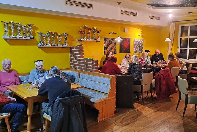 40 TeilnehmerInnen waren bei der Adventfahrt nach Steyr dabei. Nach dem Besuch des Postamtes in Christkindl und der Besichtigung der Krippenausstellung sowie der Kirche, ging es weiter in die Altstadt Steyr zum Adventmarkt. So mancher Glühwein und Glühmost wurde konsumiert und verschiedene Schmankerl verkostet. Für eine besinnliche Stimmung sorgten die Turmbläser auf dem Balkon des Rathauses. Beschwingt wurde die Heimreise angetreten und zum Abschluss in Bischofstetten in Mami`s Krumpe eingekehrt.