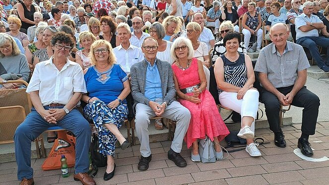 51 TeilnehmerInnen der Ortsgruppe Bischofstetten waren am 22. Juli 2024 bei der Fahrt nach Mörbisch zur Aufführung "My Fair Lady" mit dabei. In Rust stärkte sich die Reisegruppe vorher noch bei einem Heurigen.