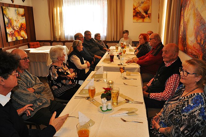 Ortsvorsitzender Horst Bednar und sein Stellvertreter Karl Krach begrüßten am 28. Dezember 2024 die Geburtstagsjubilare des zweiten Halbjahres 2024 im Gh. Sterkl. Ganz herzlich gratuliert wurden: Josef Kaliwoda, Rosa Klauser, Gerti Kirchner, Hermann Hollerer, Florian Siedl, Erika Dirnberger und Anneliese Posch. Nach dem gemeinsamen Mittagessen wurde mit einem Glaserl Wein noch einmal auf die Geburtstagskinder angestoßen. Leider nicht teilnehmen konnten Maria Bednar und Elfriede Schagerl.