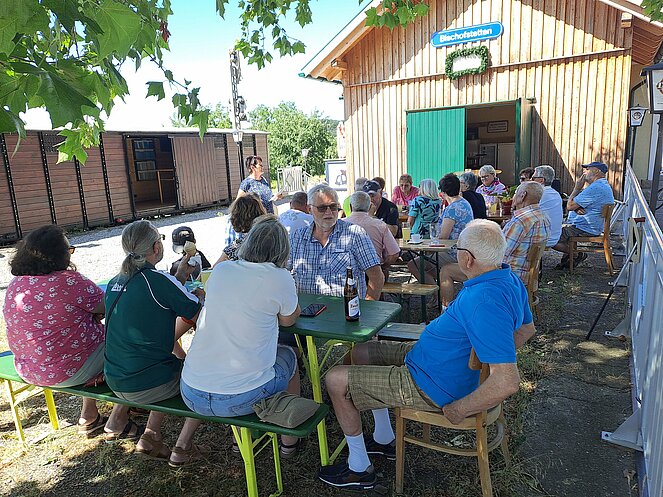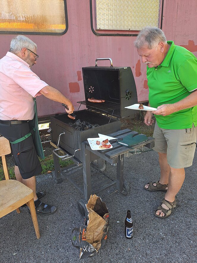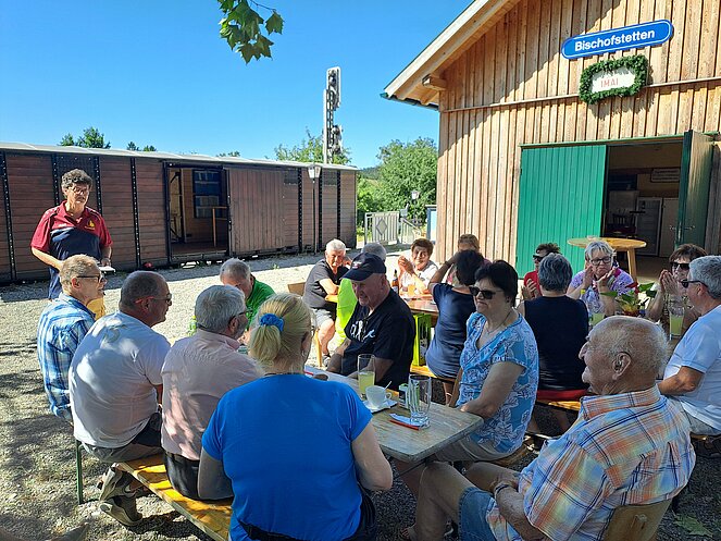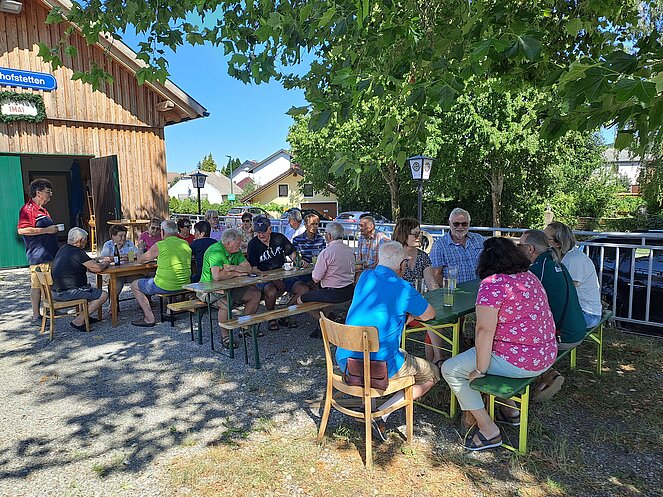Trotz brütender Hitze folgten fast alle KeglerInnen der Einladung von Präsident "Walli" zum Kegelabschluss auf der Bahnhofsrampe. Der Vorsitzende des PV Bischofstetten Horst Bednar, der auch als Schreiber bei den Herren fungiert, freute sich über die zahlreiche Teilnahme. Nach Kaffee und Kuchen (diesmal von Rosi Graf, Erni Kaufmann und Marianne Punz) wurden von Hermi Schagerl und Horst Bednar die Ergebnisse des 1. Halbjahres bekanntgegeben. Den ersten Platz bei den Damen hat sich diesmal Gitti Tiefenbacher geholt und bei den Herren Karl Schoko Schagerl. Herzliche Gratulation! Zum Dank für die gewissenhafte Durchführung der Kegelnachmittage erhielten Hermi Schagerl und Horst Bednar eine kleine Aufmerksamkeit. Anschließend gab es Grillwürstl, gekonnt gegrillt von Siegi Witschko, und zur Verdauung das eine oder andere Schnapserl. Zwischendurch wurde auf Grund der Hitze immer wieder Schatten gesucht und daher mehrmals die Tische und Bänke umgestellt.