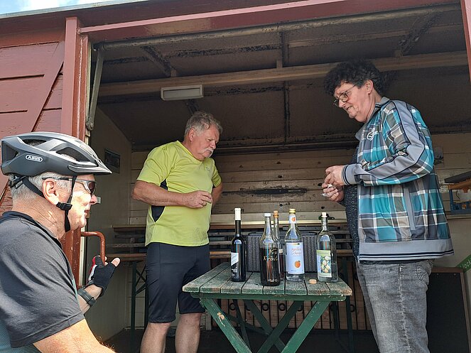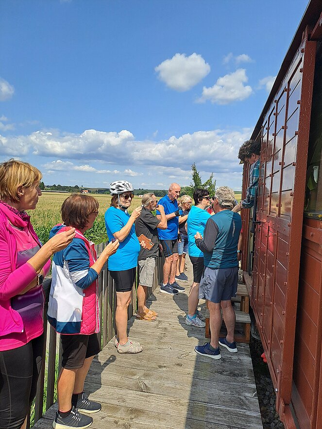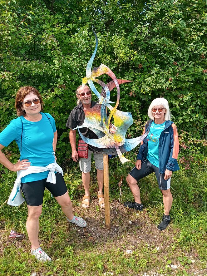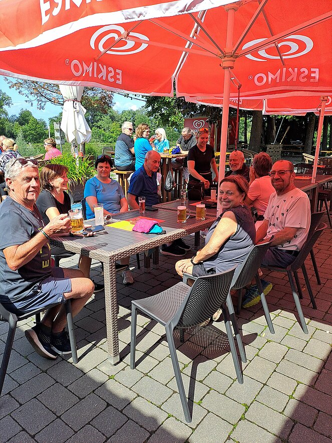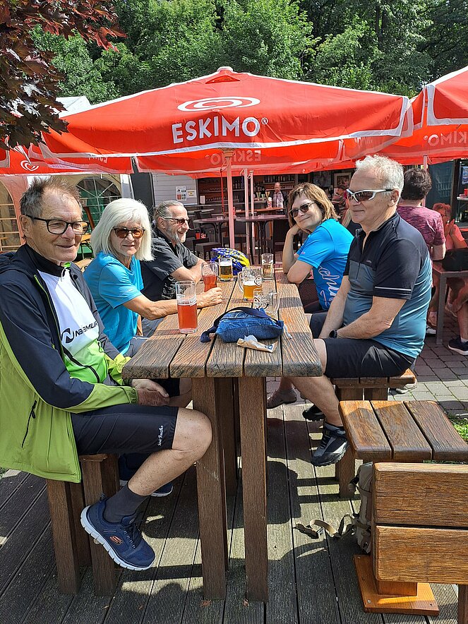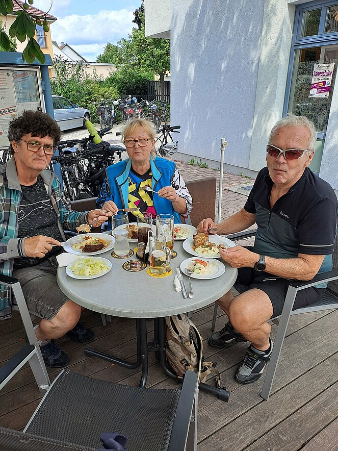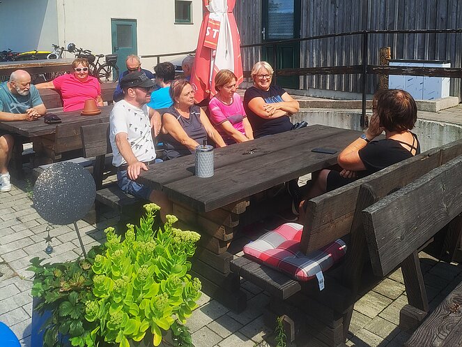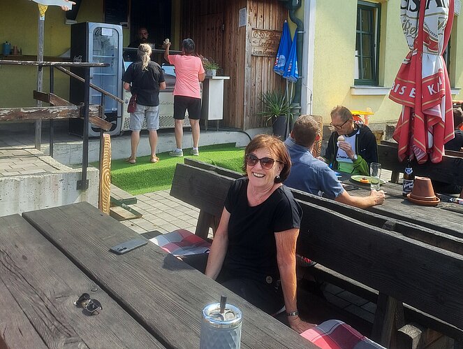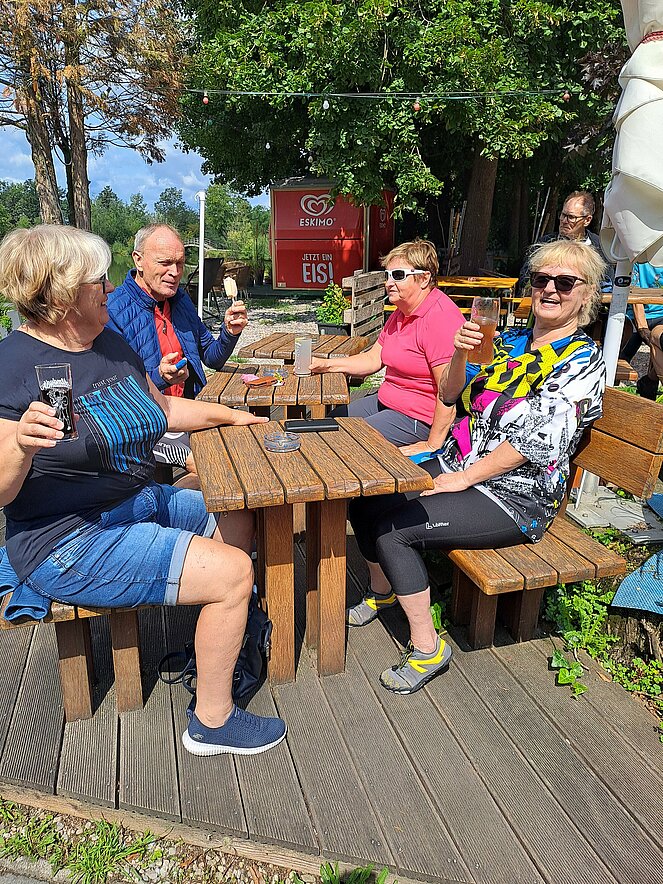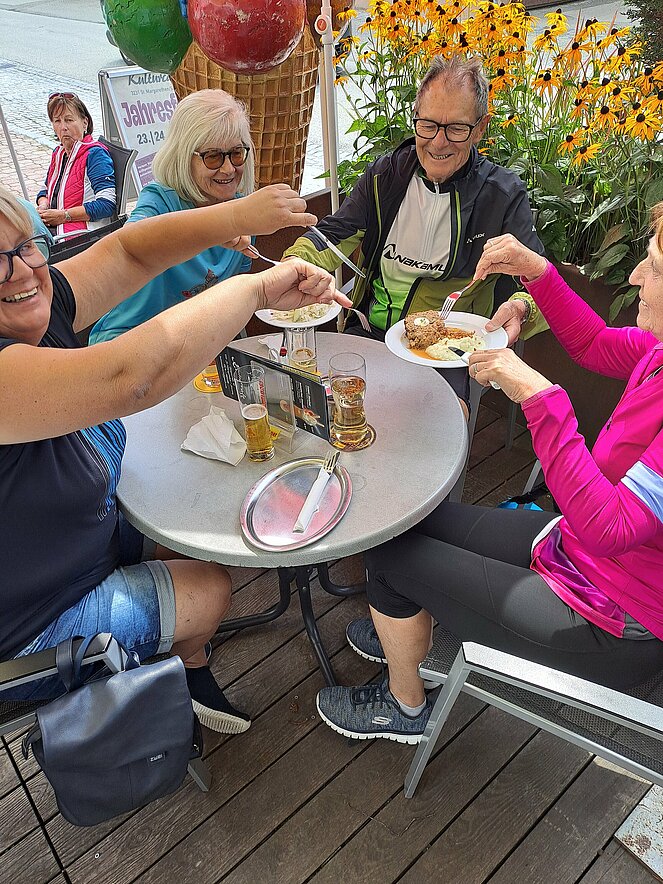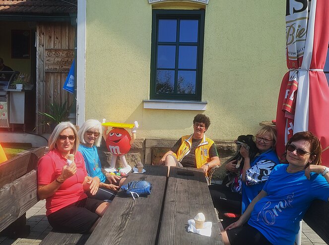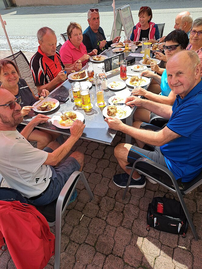 Die leichte Radtour startete vom Bahnhofsplatz weg in Richtung Klangen zum Pielchtalradweg bis zum Ebersdorfer Seeplatzl. Nach einer kurzen Trinkpause und der Erkundung der Skulpturenausstellung von Karl Krendl rund um den See, ging die Fahrt weiter über Ritzersdorf nach St. Margarethen. Im Kulturcafe Renate wurden wir bereits freundlich erwartet und im Gastgarten mit einem sehr guten Mittagsmenü und anderen Spezialitäten bewirtet. Anschließend fuhren wir am Alpenvorland-Radweg zur Haltestelle Haag-Kleinsierning, wo uns unser Vorsitzender Horst Bednar beim Waggon mit dem einen oder anderen Verdauungsstamperl bereits erwartete. Der Abschluss dieses gemütlichen Radausfluges fand in Mami`s Krumpe statt. Kaum angekommen gönnten sich die meisten mindestens ein Gupferl von dem köstlichen Bachinger-Eis aus der Vitrine. Ein gemütlicher Radausflug waren sich alle einig und dankten Karl Krach für die Organisation.