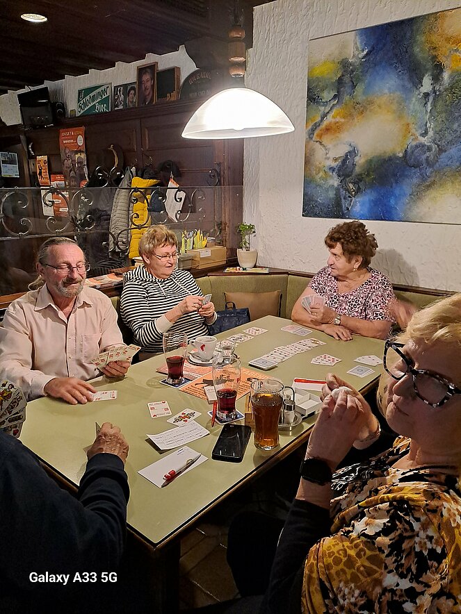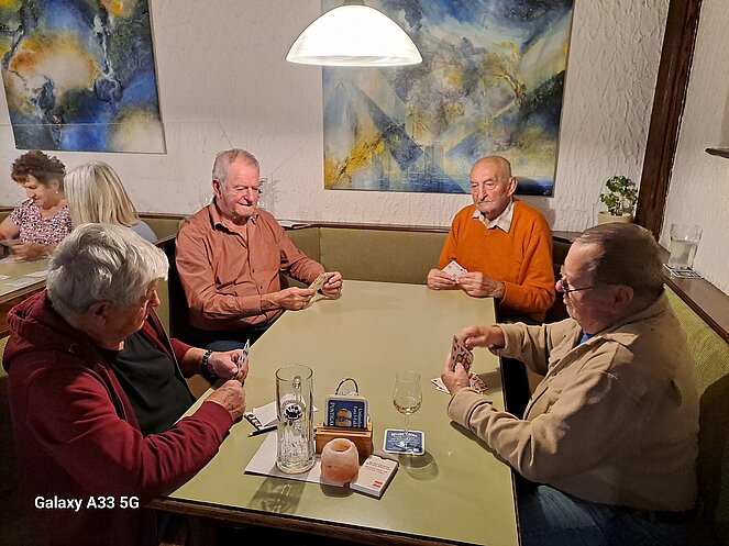 Ein paar gemütliche Stunden verbrachten wir beim gemeinsamen Spielenachmittag im Gh. Sterkl. Ob beim Bauernschnapsen, Schnapsen, Jollyspiel, Mensch ärgere dich nicht oder Rummicub, jeder versuchte sein Bestes und war voll bei der Sache. Trotzdem stand nicht das Siegen im Vordergrund, sondern das gesellige Beisammensein. Den nächsten Spielenachmittag wird es wieder im Frühjahr 2026 geben.