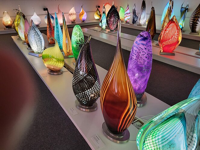 In einer anschaulichen Ausstellung konnten wir zahlreiche faszinierende Glasobjekte bestaunen – von kunstvoll gestalteten Einzelstücken bis zu aufwendig verarbeiteten Alltagsgegenständen. Die liebevoll gestalteten Schauräume luden zum Verweilen und Staunen ein und zeigten die Vielfalt und Schönheit des Werkstoffs Glas.