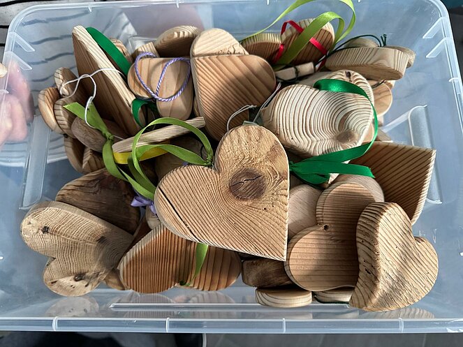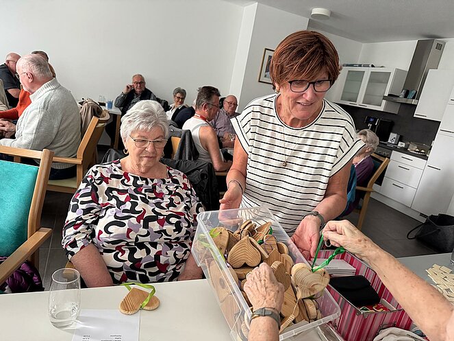 Beim letzten Pensionistennachmittag sorgte Johann Ebner für eine besonders liebevolle Überraschung: Anlässlich des bevorstehenden Muttertags überreichte er allen anwesenden Müttern kleine, handgefertigte Holzherzen.