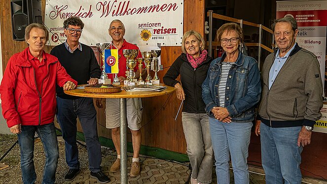 Die Ehrengäste, PVNÖ-Landespräsident Rupert Dworak, MEP Dr.Günther Sidl, Bürgermeister von Nöchling Roman Grabner, SPÖ-Bezirksgeschäftsführer Bernhard Wurm und unser OG Vorsitzender Ernst Enengl überreichten im Anschluss die Pokale an die folgenden Gewinner: