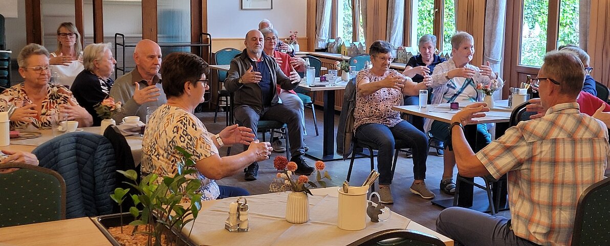 „Mit 66 Jahren ….“ von Udo Jürgens und ein paar flotten Übungen für alle Anwesenden startete dieser Nachmittag. Anhand des magischen Vierecks „Bewegung – Ernährung -Psyche und Seele – Schlaf“ gab es viele interessante Einblicke und praktische Tipps.