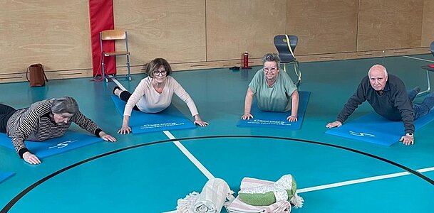 Mit viel Spaß dabei - Yoga am Sessel und auf der Matte