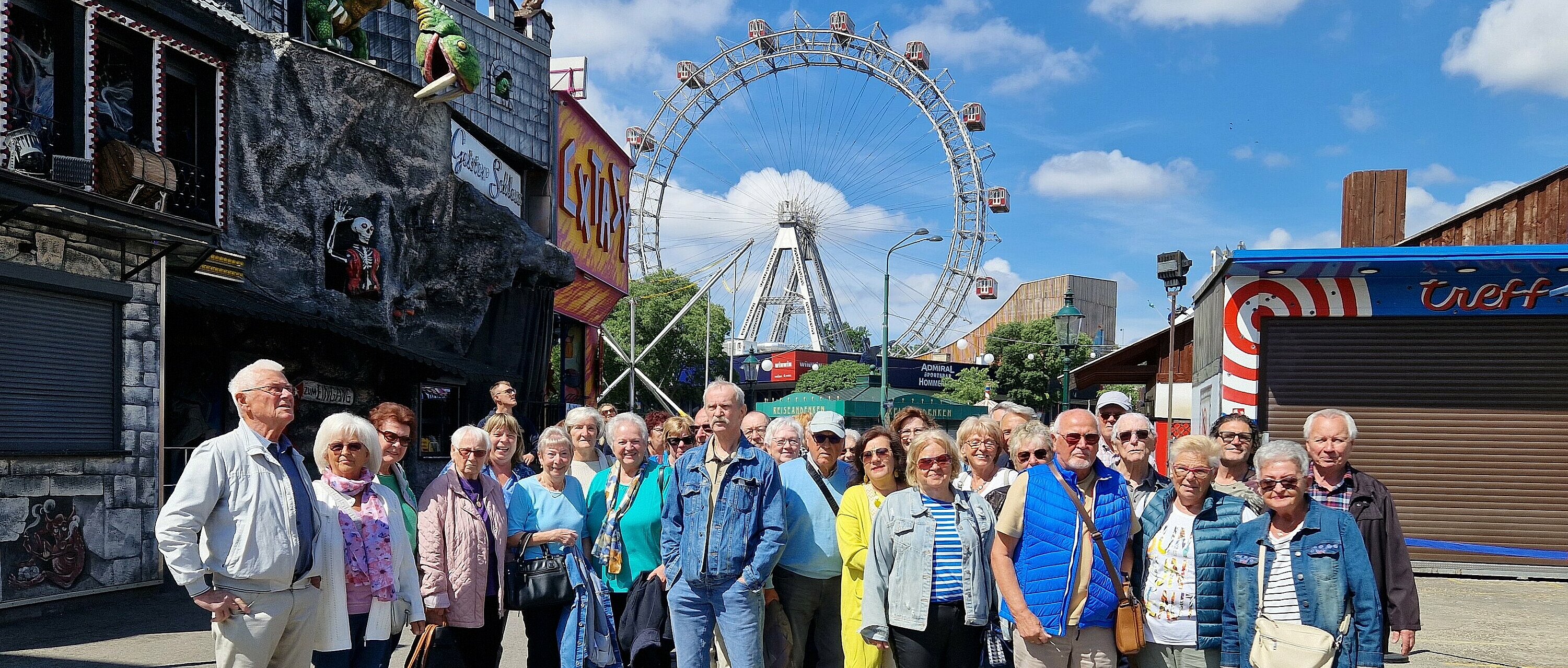 37 Pensionisten der Ortsgruppe Achau machten mit Obmann Manfred Posch einen Tagesausflug in den Wiener Prater, die Pensionisten besuchten das Wachsfigurenkabinett Madame Tussauds, anschließend fuhr man mit dem Riesenrad, danach spazierte man ins Schweizerhaus, wo man drei gemütliche Stunden bei Bier und Stelze verbrachte, ein Teil der Pensionisten nutzte die Gelegenheit und fuhr zwischendurch auch noch mit der Liliputbahn, gegen 18.00 Uhr gings wieder gut gelaunt und mit vollem Magen Richtung Achau nach Hause.