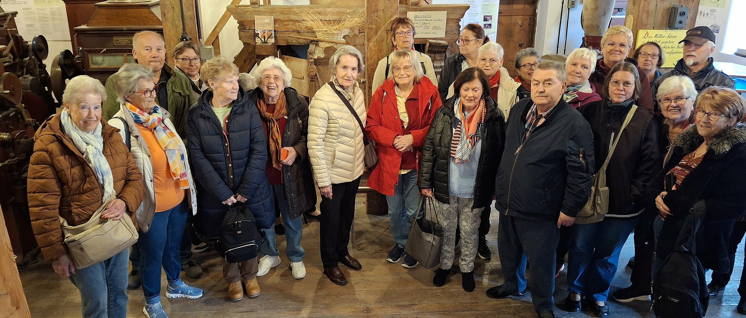 Diesmal fuhren viele Pensionisten zu einem interessanten Vortrag ins Brot- und Mühlenmuseum. Es wurden uns genau alle Vorgänge vom Mahlen bis zum fertigen Brot erklärt. Auch wurden die verschiedensten Herstellungsmethoden vom Handmahlen und Sieben bis zur Industriemühle teilweise vorgeführt. Nach diesem informativen Vortrag machten wir noch einen Abstecher ins Lindt Factory Qutlet, wo es eine riesige Auswahl an Pralinen gab. Den Abschluss bildete die Fahrt zum Kummerbauerstadl, und dort ließen wir unseren Ausflug kulinarisch ausklingen.