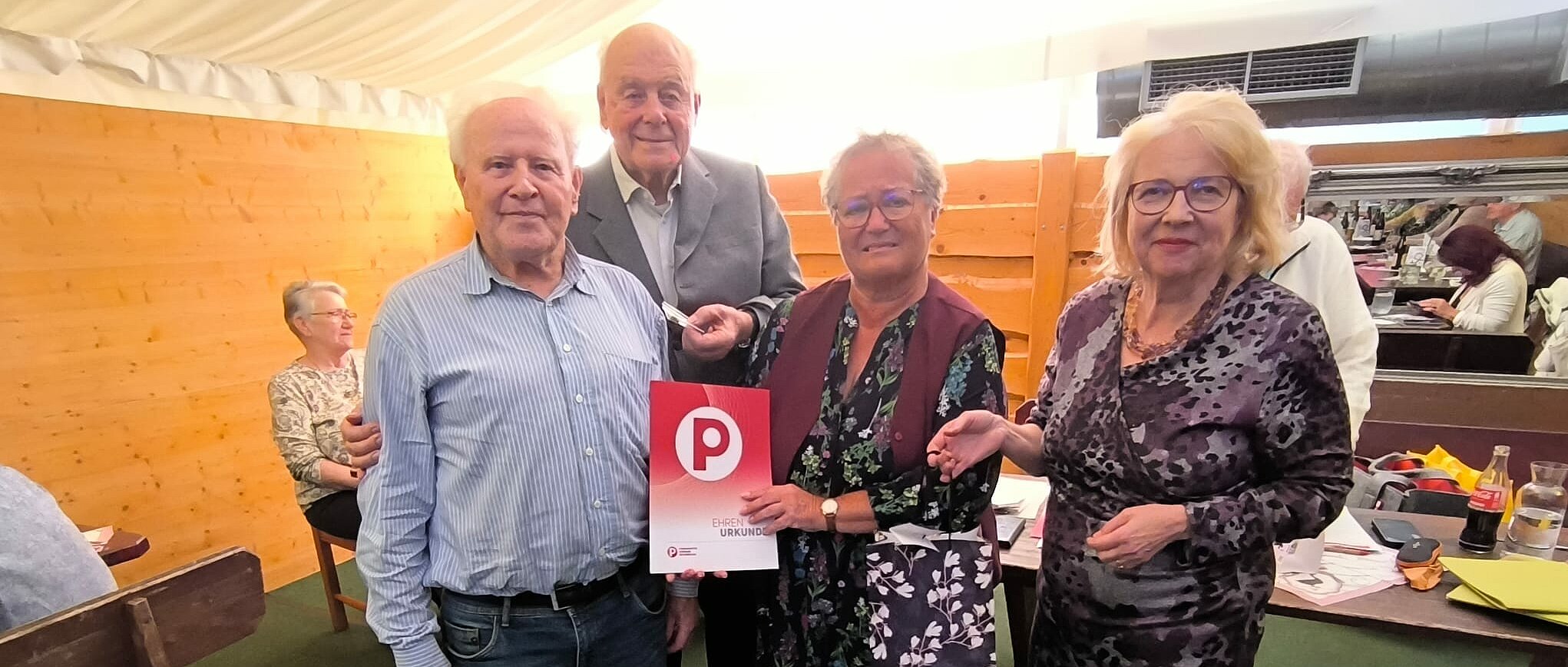 Am 4. Nov. 2025 fand im beheizten Zelt des Heurigen Reblaus in Leopoldsdorf die Mitgliederversammlung mit Neuwahl des Ortsgruppenausschusses und Mitgliederehrungen statt. Es waren 63 Mitglieder anwesend.