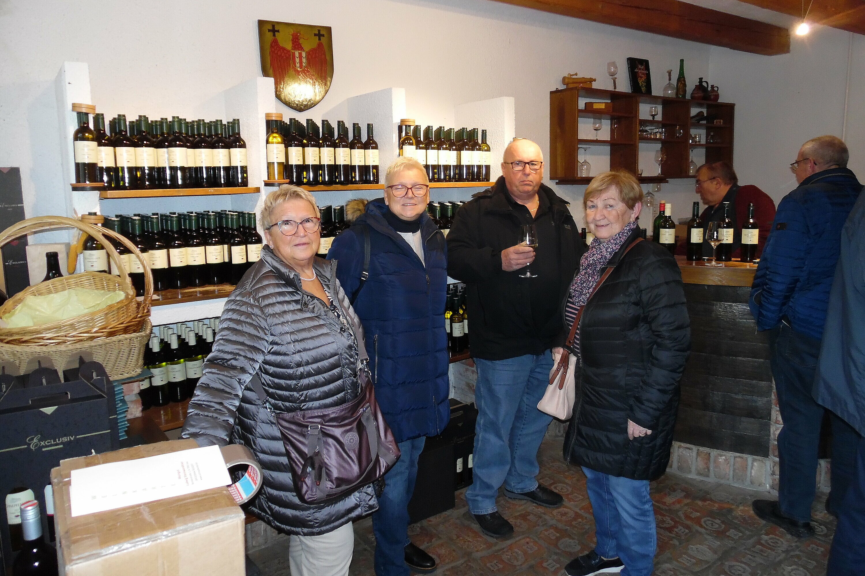 Unsere letzte Tagesfahrt 2024 führte uns wieder nach Jois zu unserem traditionellen "Gans´lessen". Nachdem köstlichen Gans´l wurden wir von den Wirtsleuten zu einer Weinverkostung eingeladen. Lustig gelaunt und mit entlichen Flaschen Wein ausgestatten fuhren wir noch zur Firma Heidi/Niemetz, wo wir Süßgkeiten einkaufen konnten, bevor wir die Heimreisen angetreten sind.