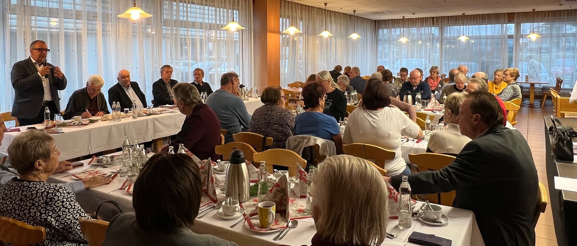 Zahlreiche Funktionärinnen und Funktionäre folgten der Einladung zur Bezirksausschuss- und konstituierenden Sitzung, die im Adler Modemarkt in Vösendorf stattfand. Vorsitzender Meinhard Kronister eröffnete die Sitzung und gab einen umfassenden Rückblick auf die politischen Entwicklungen des vergangenen Jahres sowie auf den engagierten Einsatz des gesamten PVÖ für die Anliegen der Pensionistinnen und Pensionisten.