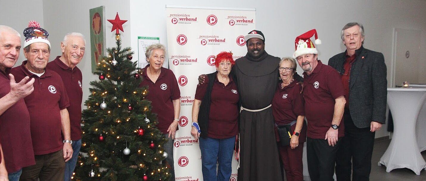 Weihnachtlicher Nachmittag im Volksheim. Die Bläsergruppe der Lyra und der vom TV bekannte singende Franziskanerpater Sandesh Manuel sorgten für das Programm.