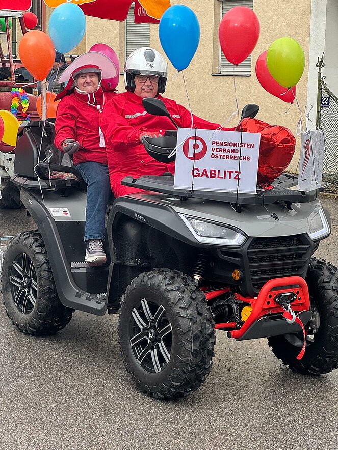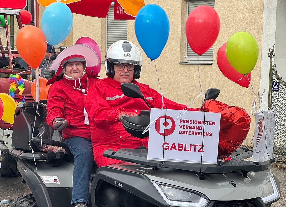 Alle Jahre findet am Faschingsdienstag in Gablitz der Faschingsumzug statt. Heuer waren wir auch vertreten, unsere Obfrau Luise Zwettler , Regionsvositzender-Stellvertreter Wolfgang Weis fuhren mit. Unsere fleißige Gizella Eichhorn warf etliche Kilo Zuckerl in die Zuschauer. Es war eine Gaudi. Freuen uns schon auf das nächstes Jahr.